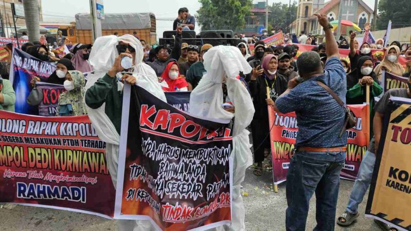 MEDAN — Seribuan massa warga dari berbagai penjuru Kota Tanjungbalai dan sekitarnya, menggeruduk Markas Polda Sumatera Utara, Jumat (25/7/2025), menuntut pemecatan Kompol Dedi Kurniawan (DK), perwira menengah yang diduga mengkriminalisasi seorang warga bernama Rahmadi.