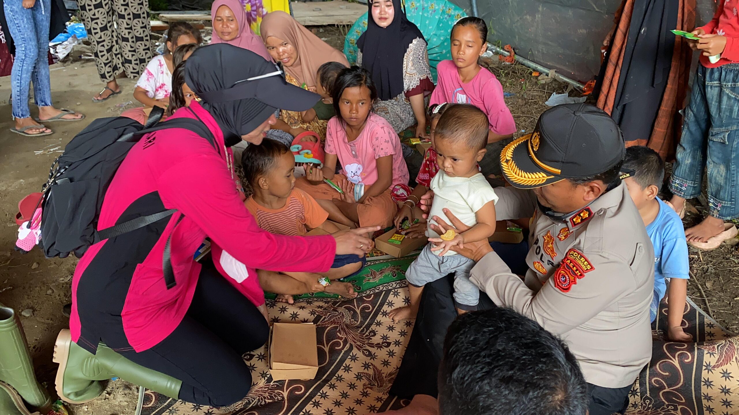 Di sela-sela kegiatan, Kapolres Aceh Tenggara bersama Ketua Bhayangkari juga menyempatkan diri menghibur anak-anak yang berada di tenda pengungsian. Interaksi tersebut diharapkan dapat mengurangi trauma serta menghadirkan keceriaan bagi anak-anak korban bencana.