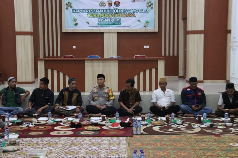 GAYO LUES |  Dalam suasana penuh kehangatan bulan suci Ramadhan, Kepolisian Resor Gayo Lues menggelar kegiatan buka puasa bersama dengan insan pers sebagai upaya mempererat hubungan kemitraan serta memperkuat sinergitas antara kepolisian dan media. Kegiatan ini berlangsung pada Senin, 16 Maret 2026, mulai pukul 18.00 WIB di Aula Adhi Pradana Polres Gayo Lues, Jalan Pang Abu Blangsere, Kecamatan Kutapanjang, Kabupaten Gayo Lues.