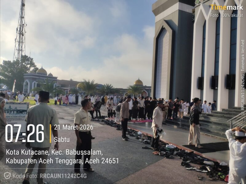 Aceh Tenggara – Dalam rangka memberikan rasa aman dan nyaman kepada masyarakat saat pelaksanaan Hari Raya Idul Fitri 1447 H, jajaran Polres Aceh Tenggara melaksanakan kegiatan pengamanan Sholat Idul Fitri di Masjid Agung At-Taqwa, Kabupaten Aceh Tenggara. Sabtu 21 Maret 2026